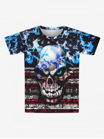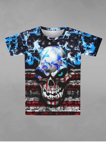 Tops > Gothic 3D Skull Striped Distressed Paint Pentagram Print Short Sleeves T-shirt For Men