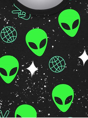 Gothic Alien Moon Star Victory Gesture Galaxy Print Short Sleeves T-shirt For Men - Black - L