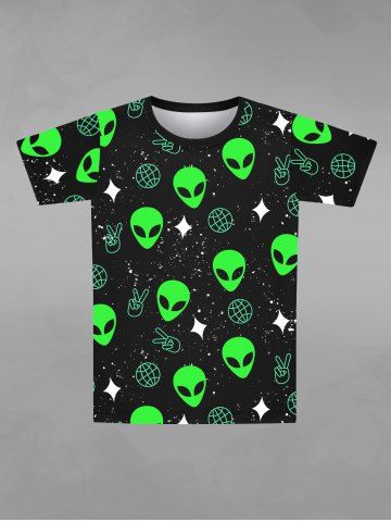 Tops > Gothic Alien Moon Star Victory Gesture Galaxy Print Short Sleeves T-shirt For Men