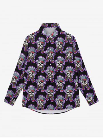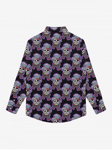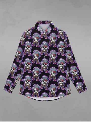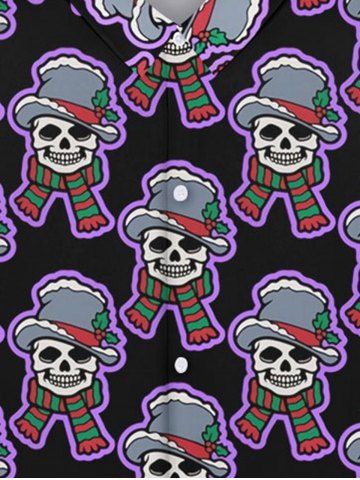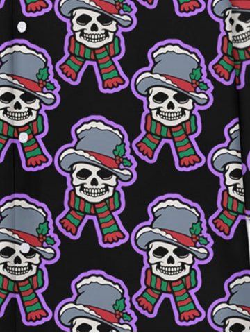 Gothic Christmas Hat Scarf Skull Print Buttons Shirt For Men - Black - 7xl