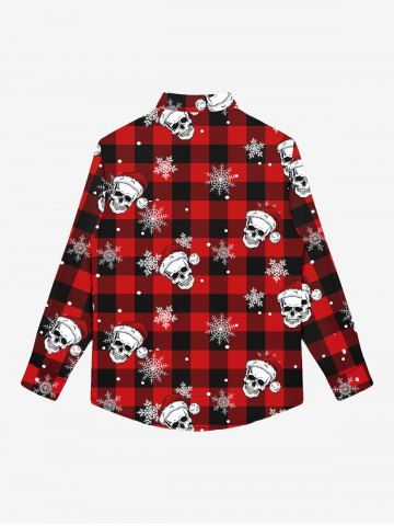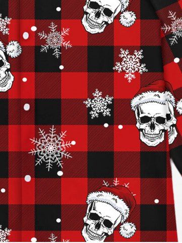 Gothic Christmas Hat Skull Snowflake Plaid Print Buttons Turn-down Collar Long Sleeves Shirt For Men - Red - M