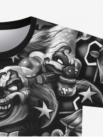 Gothic Clown Bowknot Star Print T-shirt For Men - Black - 5xl