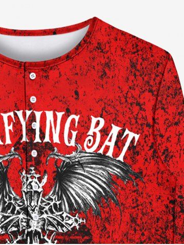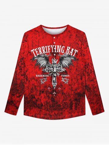Gothic Cross Wings Stone Textured Print Buttons Halloween T-shirt For Men - Red - L