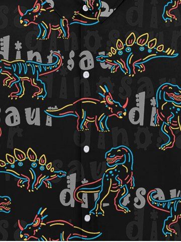 Gothic Dinosaur Letters Print Button Down Shirt For Men - Black - 6xl