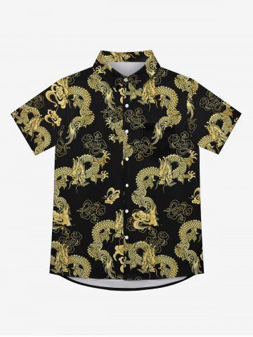 Gothic Dragon Auspicious Cloud Print Button Down Shirt For Men - Black - M