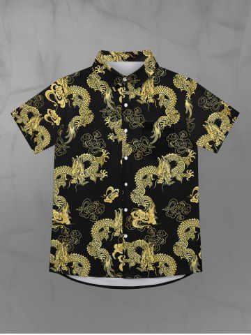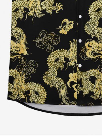 Gothic Dragon Auspicious Cloud Print Button Down Shirt For Men - Black - Xl