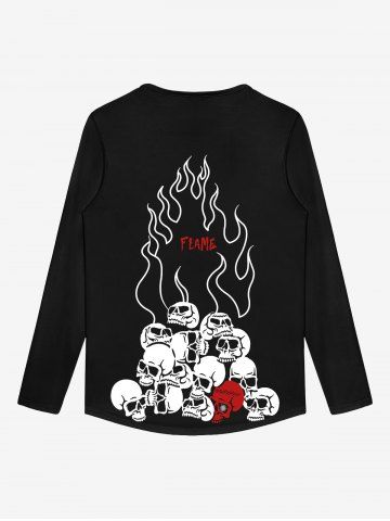 Gothic Flame Skulls Print Buttons Halloween T-shirt For Men - Black - Xl