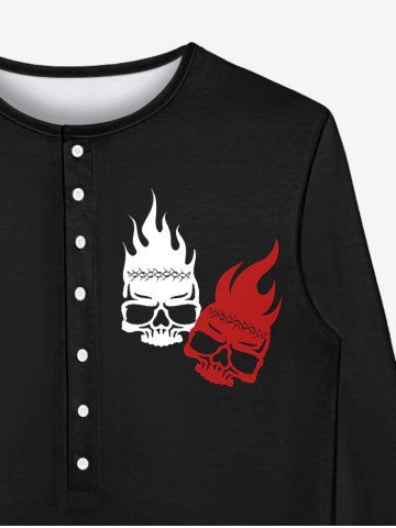 Gothic Flame Skulls Print Buttons Halloween T-shirt For Men - Black - 2xl
