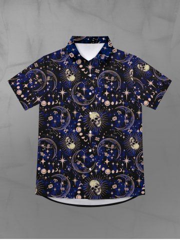 Tops > Gothic Galaxy Skull Sun Moon Star Print Button Down Shirt For Men