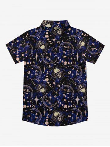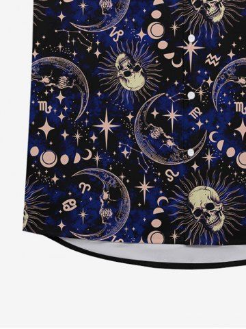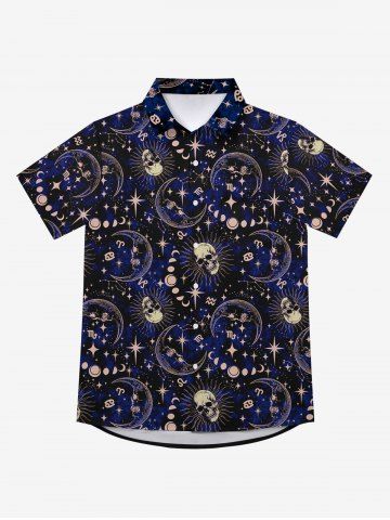 Tops > Gothic Galaxy Skull Sun Moon Star Print Button Down Shirt For Men