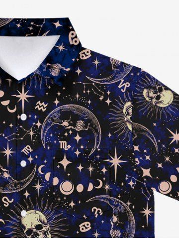 Gothic Galaxy Skull Sun Moon Star Print Button Down Shirt For Men - Black - Xl