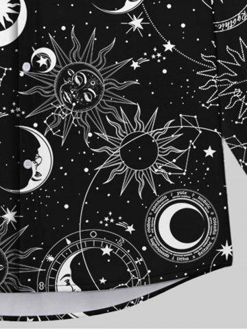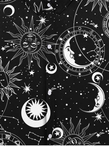 Gothic Galaxy Sun Moon Star Print Button Down Shirt For Men - Black - 2xl