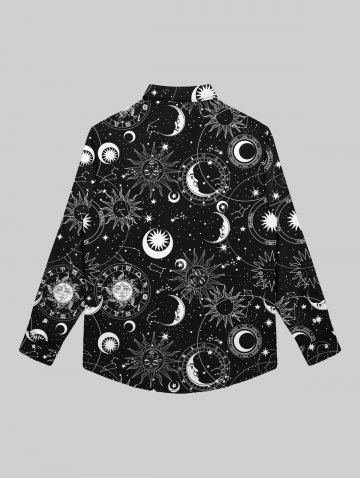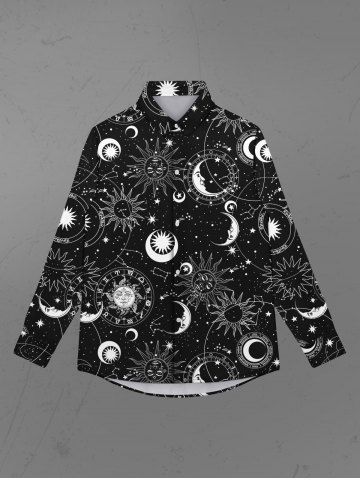 Gothic Galaxy Sun Moon Star Print Button Down Shirt For Men - Black - 3xl