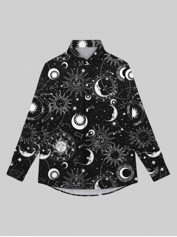 Gothic Galaxy Sun Moon Star Print Button Down Shirt For Men - Black - 6xl