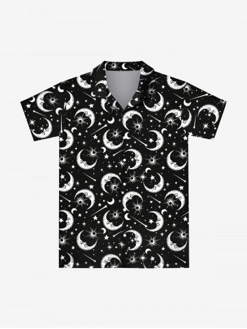 Gothic Galaxy Sun Moon Star Print Button Down Shirt For Men - Black - 2xl