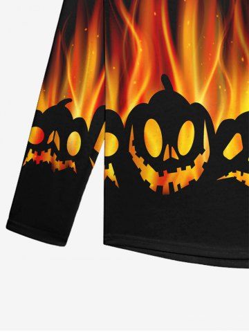 Gothic Glitter Fire Flame Pumpkin Print Buttons Halloween T-shirt For Men - Black - Xl