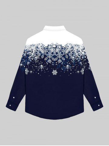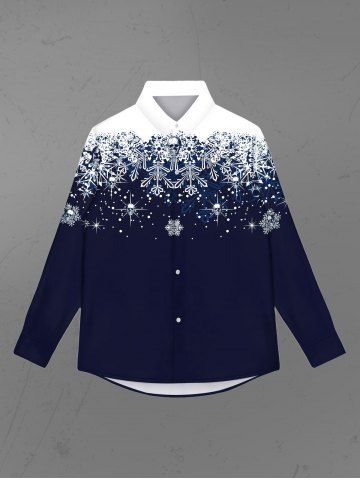 Gothic Glitter Skulls Snowflake Print Christmas Turn-down Collar Buttons Long Sleeves Shirt For Men - Blue - Xl