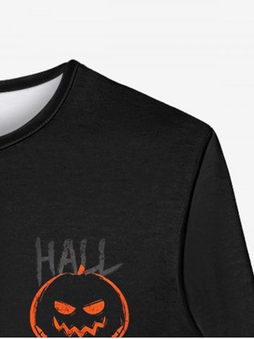 Gothic Halloween Pumpkin Skeleton Claw Print Buttons T-shirt For Men - Black - 4xl