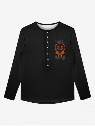 Gothic Halloween Pumpkin Skeleton Claw Print Buttons T-shirt For Men - Black - 5xl