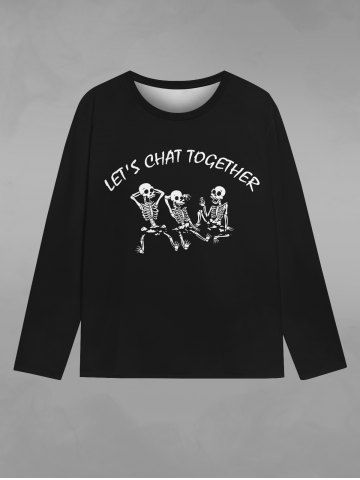 Gothic Halloween Skeleton Letters Print T-shirt For Men - Black - 2xl