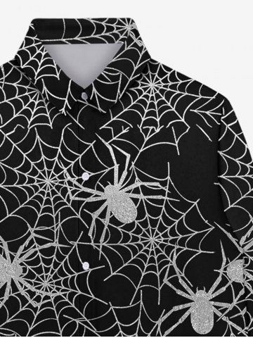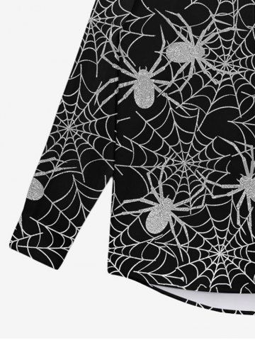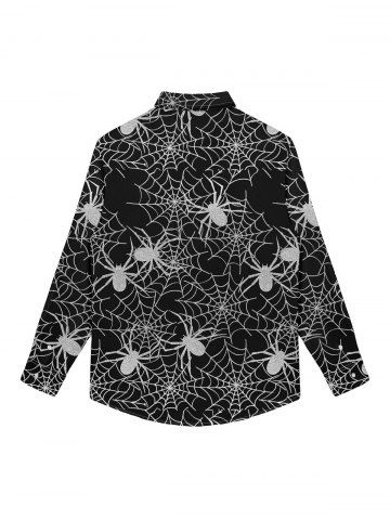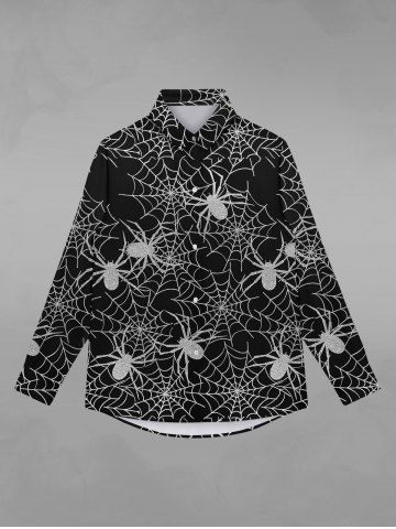 Gothic Halloween Spider Web Print Buttons Shirt For Men - Black - L