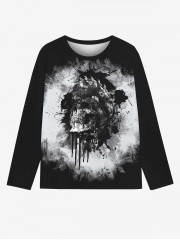 Tops > Gothic Ink Paint Splatter Skull Print Long Sleeve T-shirt For Men