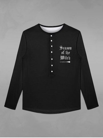 Gothic Letters Print Buttons T-shirt For Men - Black - 5xl
