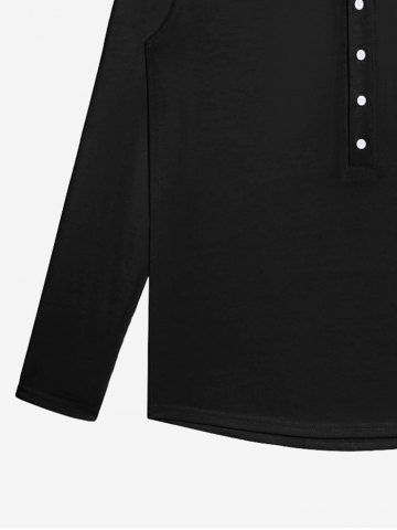 Gothic Letters Print Buttons T-shirt For Men - Black - 7xl