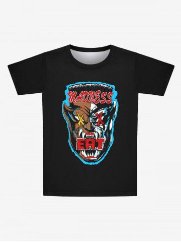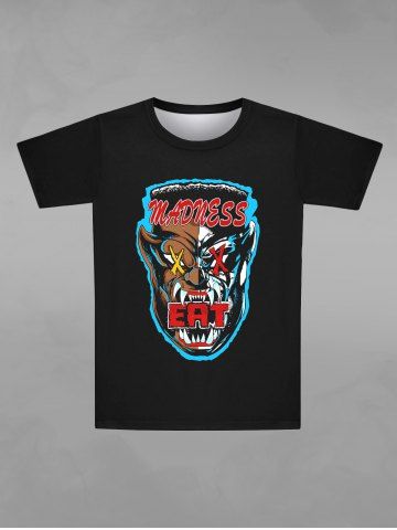 Gothic Mad Monster Letters Print T-shirt For Men - Black - 2xl