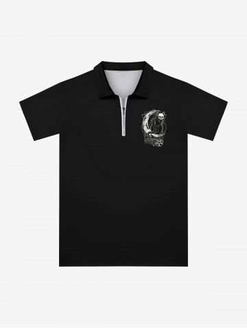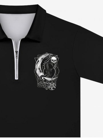 Gothic Moon Skull Cat Pentagram Tarot Cards Print Zipper Polo Shirt For Men - Black - 6xl
