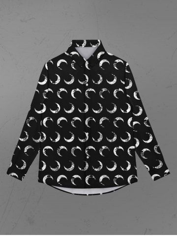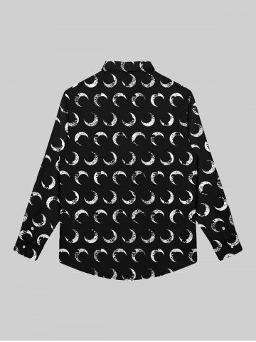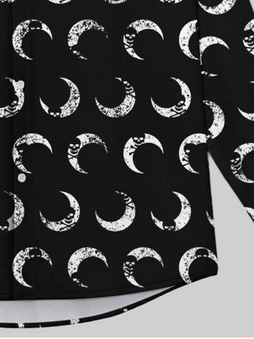 Gothic Moon Skulls Print Button Down Shirt For Men - Black - 3xl