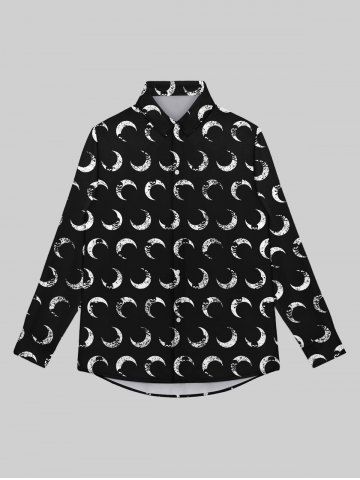 Gothic Moon Skulls Print Button Down Shirt For Men - Black - 5xl