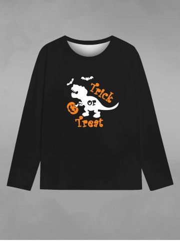 Gothic Pumpkin Dinosaur Bat Letters Print Halloween T-shirt For Men - Black - 5xl