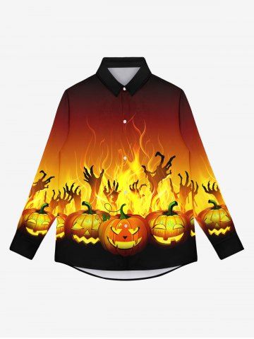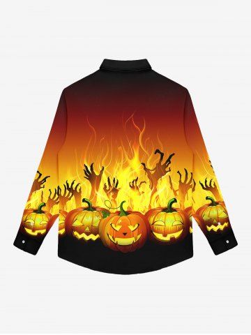 Gothic Pumpkin Flame Hands Colorblock Print Halloween Shirt For Men - Black - L