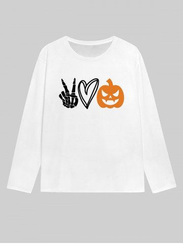 Gothic Pumpkin Heart Skeleton Claw Print T-shirt For Men - White - L