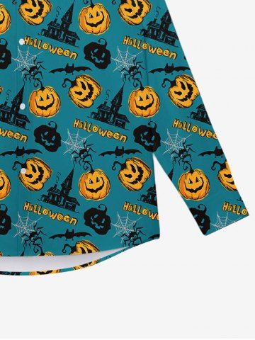 Gothic Pumpkin Spider Bat Castle Print Halloween Shirt For Men - Green - L