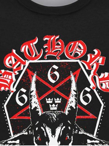 Gothic Sheep Head Star Cross Letters Print T-shirt For Men - Black - Xl