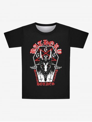 Gothic Sheep Head Star Cross Letters Print T-shirt For Men - Black - 2xl