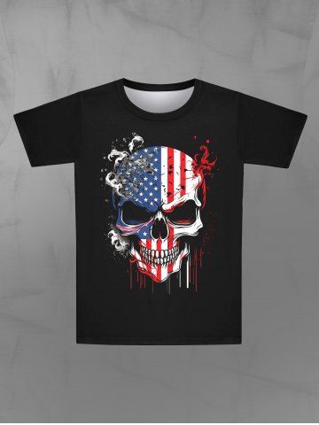 Gothic Skull American Flag Blood Paint Drop Blobs Print T-shirt For Men - Black - L