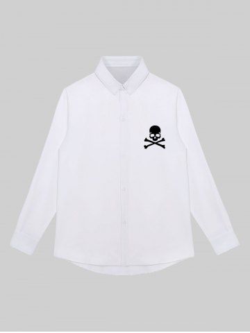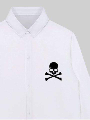 Gothic Skull Print Buttons Shirt For Men - White - L