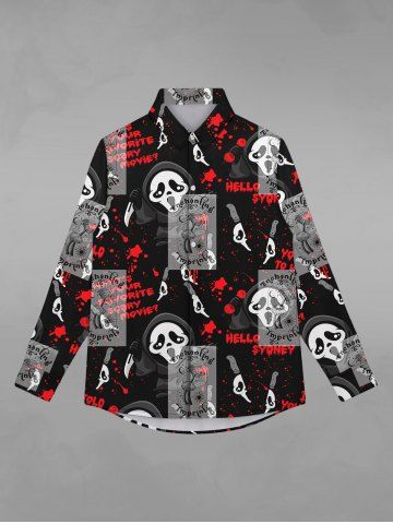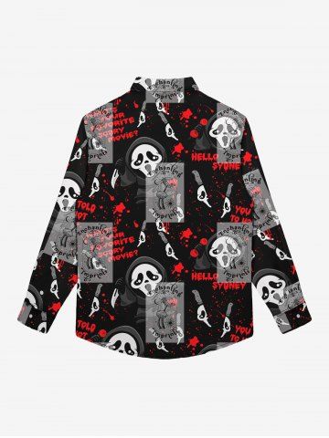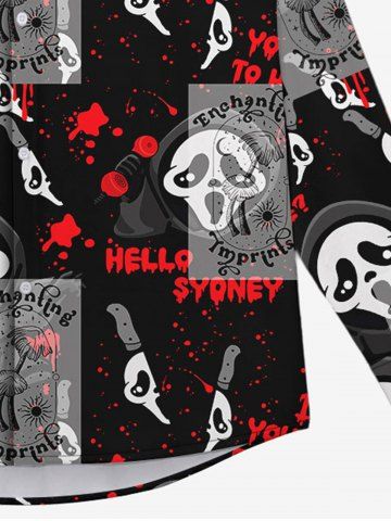 Gothic Skulls Ghost Paint Splatter Letters Sun Moon Print Button Down Shirt For Men - Black - 2xl