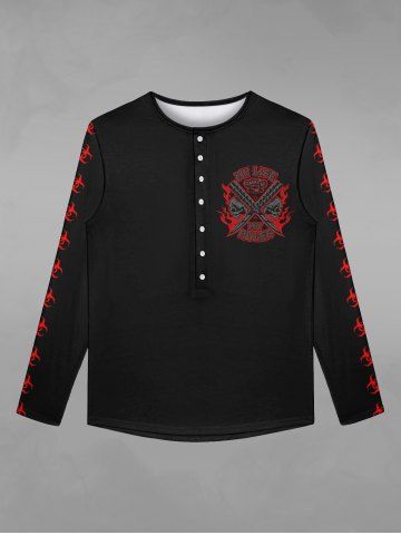 Gothic Skulls Knife Print Buttons Halloween T-shirt For Men - Black - L