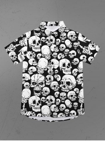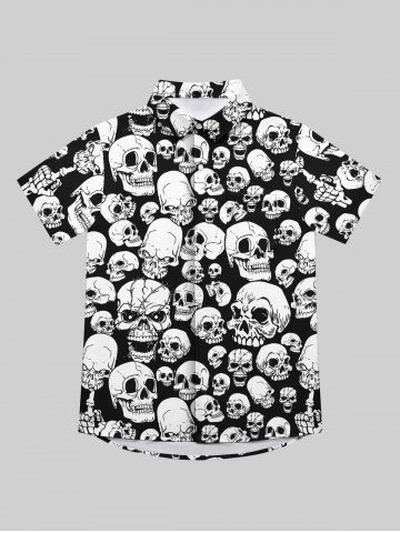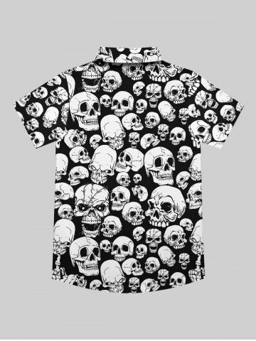 Gothic Skulls Print Button Down Shirt For Men - Black - L