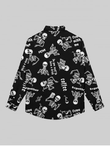 Gothic Skulls Skeleton Drinking Print Button Down Shirt For Men - Black - M