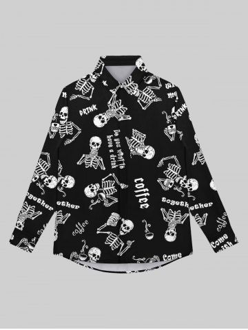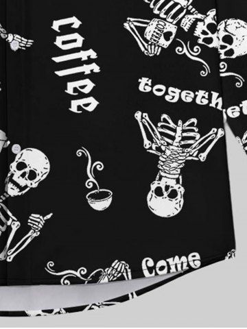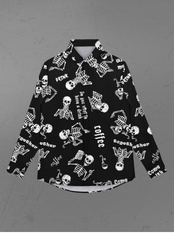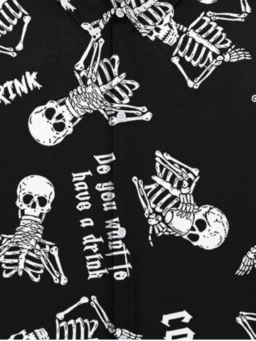 Gothic Skulls Skeleton Drinking Print Button Down Shirt For Men - Black - 2xl