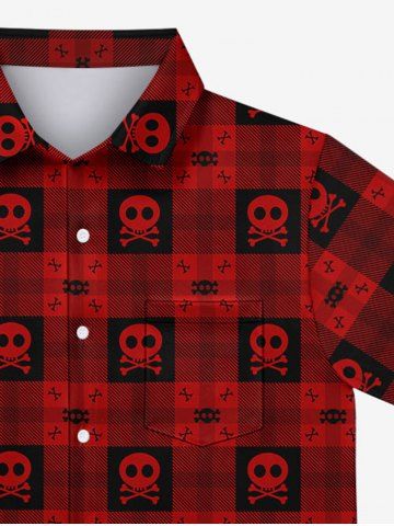 Gothic Skulls Skeleton Plaid Print Button Down Shirt For Men - Red - Xl