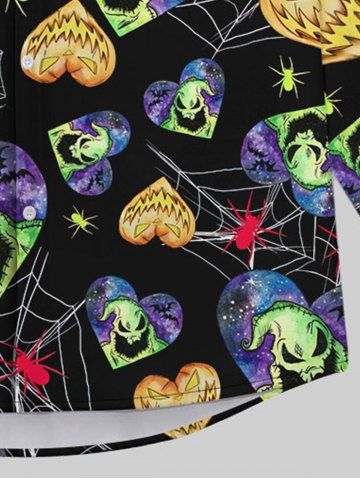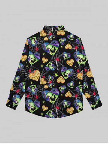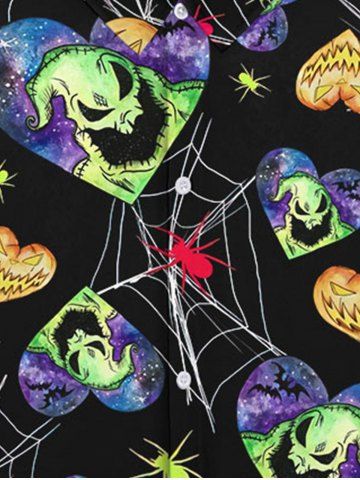 Gothic Spider Web Monster Heart Bat Galaxy Print Valentines Buttons Shirt For Men - Black - L