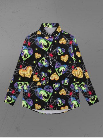 Gothic Spider Web Monster Heart Bat Galaxy Print Valentines Buttons Shirt For Men - Black - 7xl