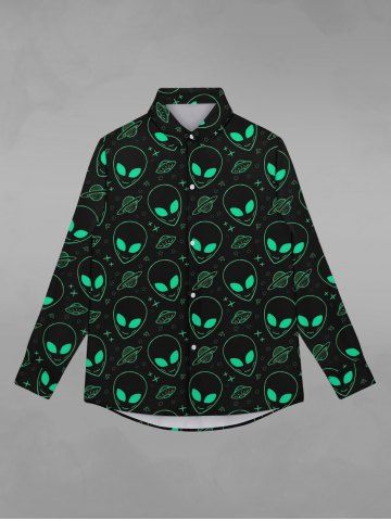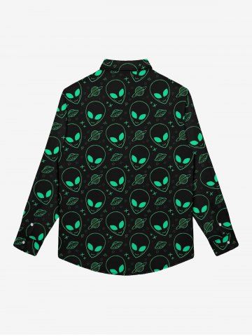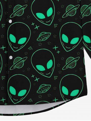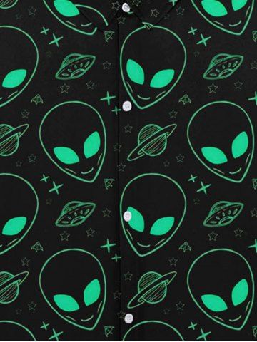 Gothic Turn-down Collar Alien UFO Planet Print Buttons Shirt For Men - Black - 3xl