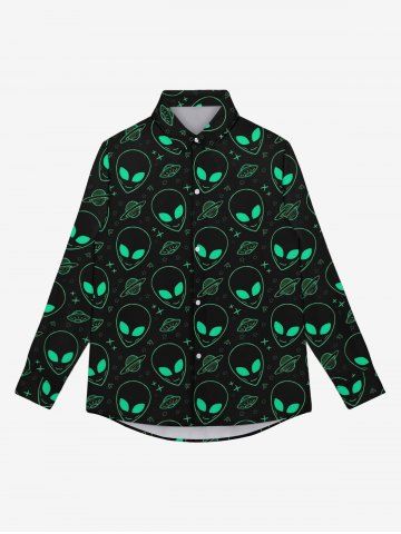 Gothic Turn-down Collar Alien UFO Planet Print Buttons Shirt For Men - Black - 4xl